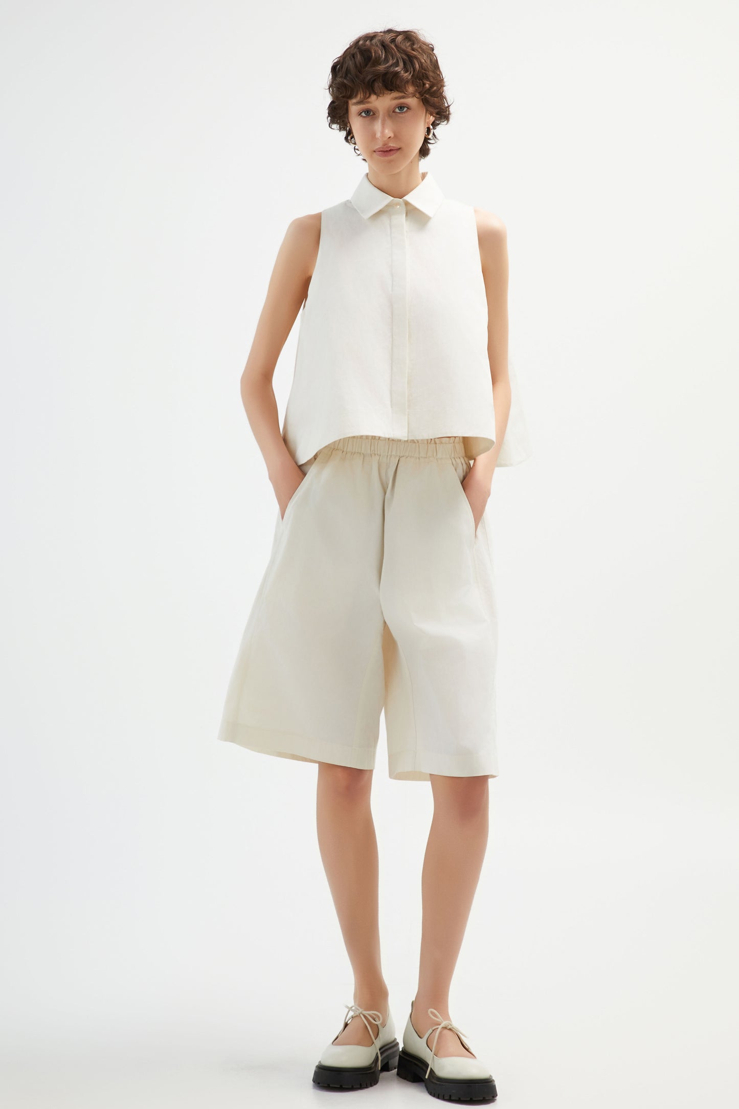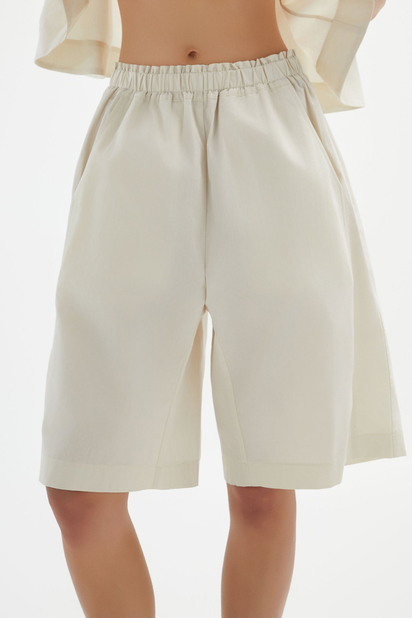 Our classic Dune Shorts embody simplicity and elegance. Crafted from our signature cotton yarn-dyed broadcloth, they feature a comfortable elastic waistband, a knee-length cut, and tone-on-tone side panels and pockets—perfect details for a relaxed yet timeless look. Stay effortlessly polished and pair the Dune Shorts with the Bloom Blouse for the full look.