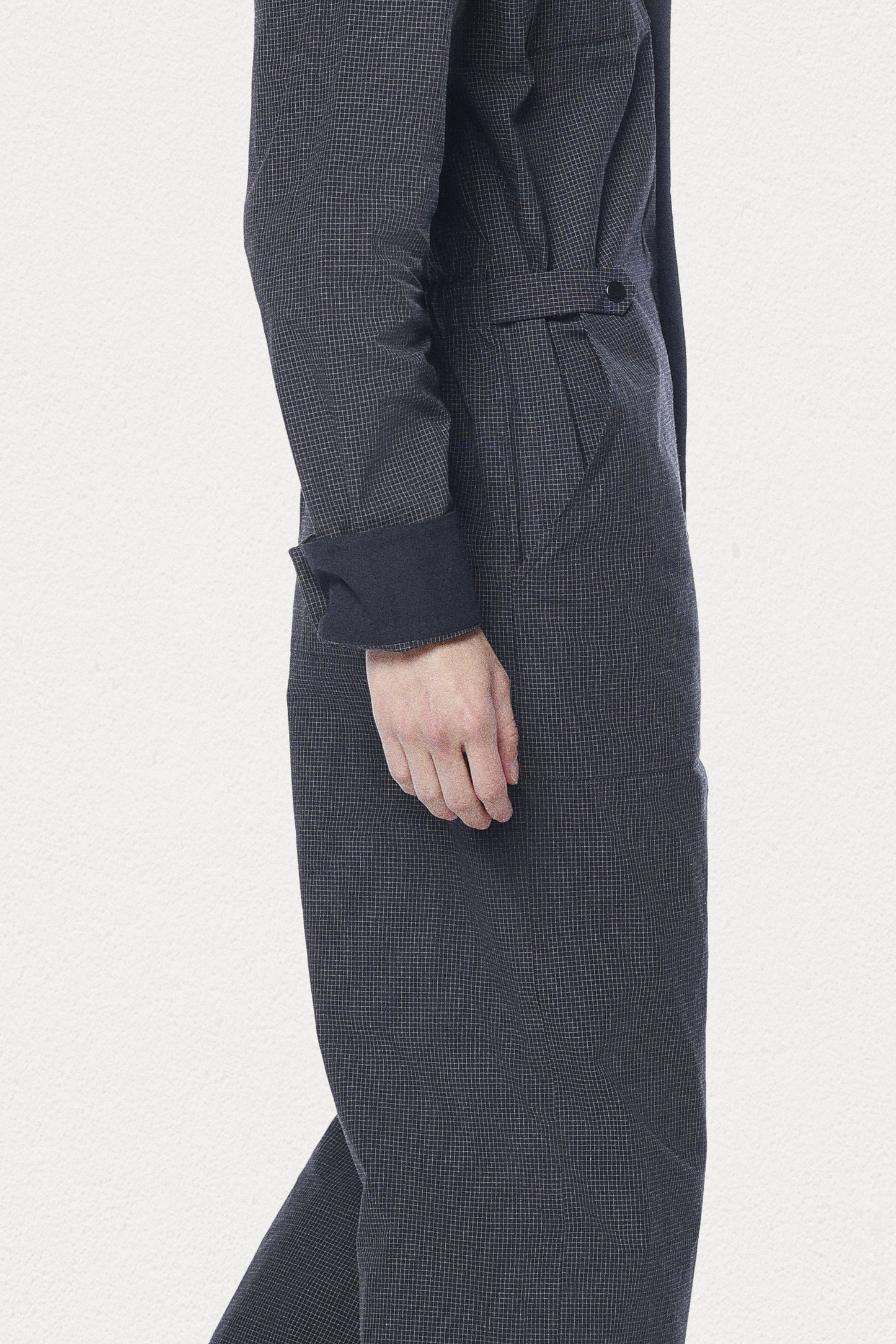 Elevate your wardrobe with our sleek Grid Aviator Jumpsuit, crafted from premium gabardine cotton with a textured grid pattern.This jumpsuit brings a sophisticated updated look to all-weather dressing with its elasticated back waist and adjustable front tabs ensuring a tailored fit. Crafted for modern utility, it features adjustable snap buttons and reinforced stitching for enhanced durability. Perfect for everyday wear, this stylish jumpsuit effortlessly blends fashion with function.
