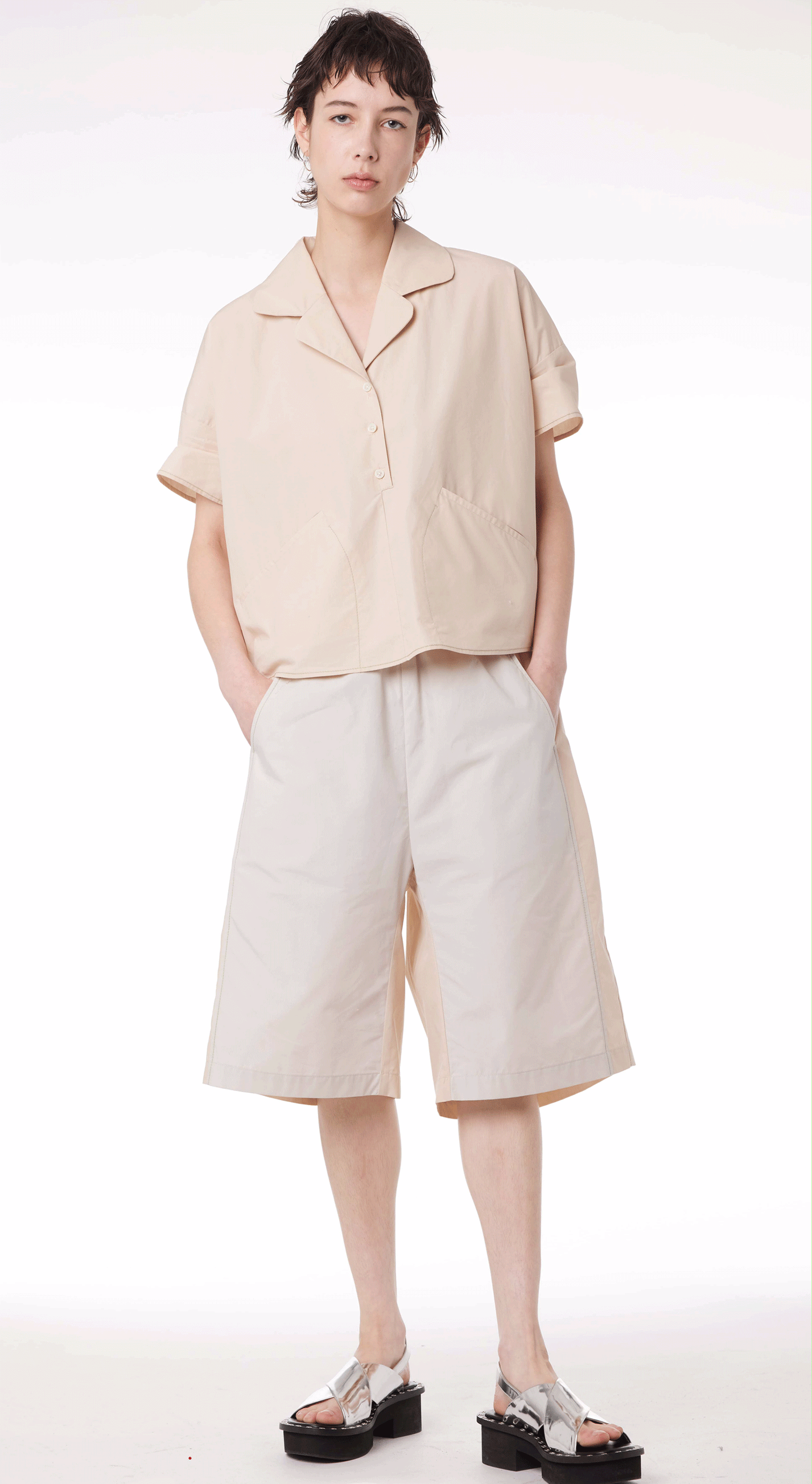 Our Sand Dune Shorts are made from our signature Japanese typewriter cotton. Featuring subtle toneon-tone color blocking and contrasting stitch details throughout. The elasticated waistband ensures a comfortable fit, while the knee-length silhouette is equally relaxed and easy to wear.