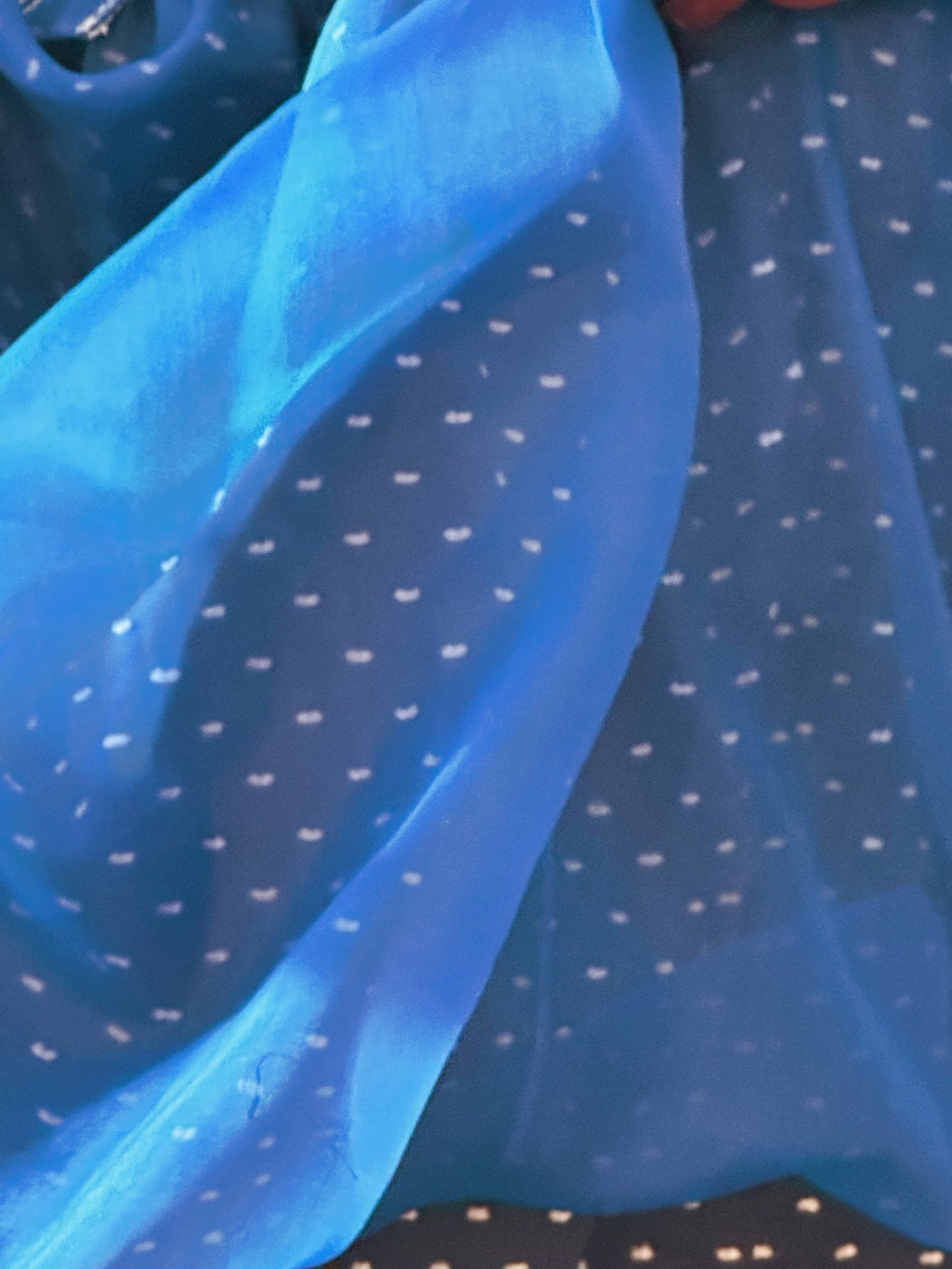 Fabric Composition: 100% Cotton Dyed Yarn Cloth with 100% Silk Organza overlay